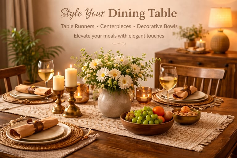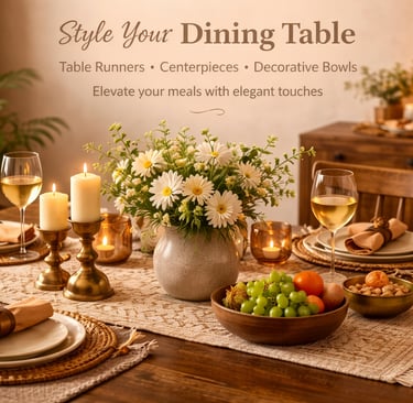 Your dining table is more than just a functional space—it can be a décor highlight. Add table runners, centerpieces, and decorative bowls. Small touches like candles and flowers can make everyday meals feel special.