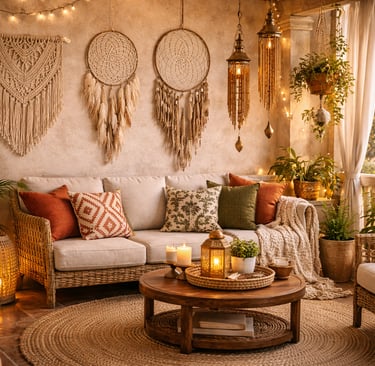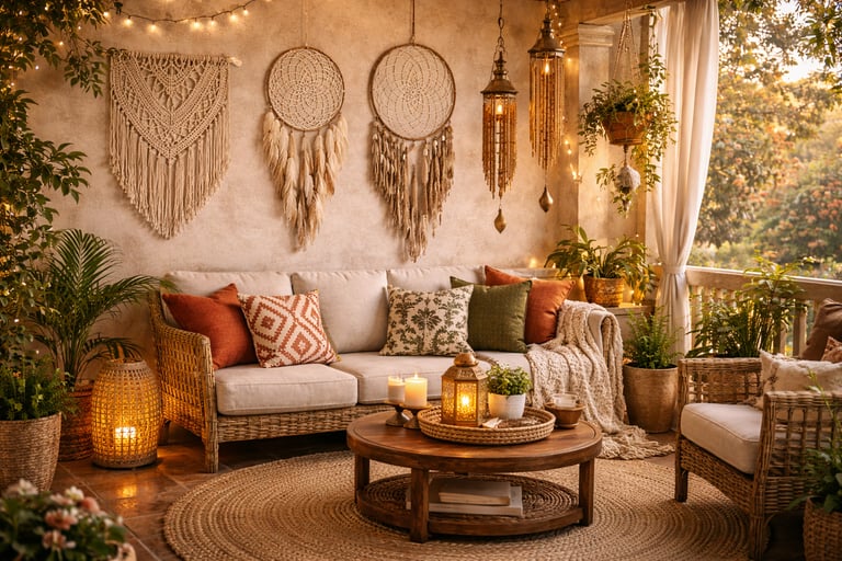 Give your veranda character by adding a few standout elements instead of cluttering the space. Think dreamcatchers, wind chimes, handcrafted wall hangings, or a statement mirror. These pieces add movement and visual interest, especially when they gently sway with the breeze.